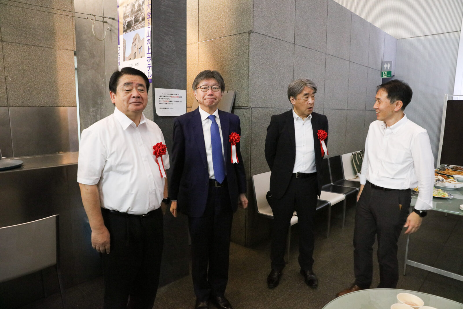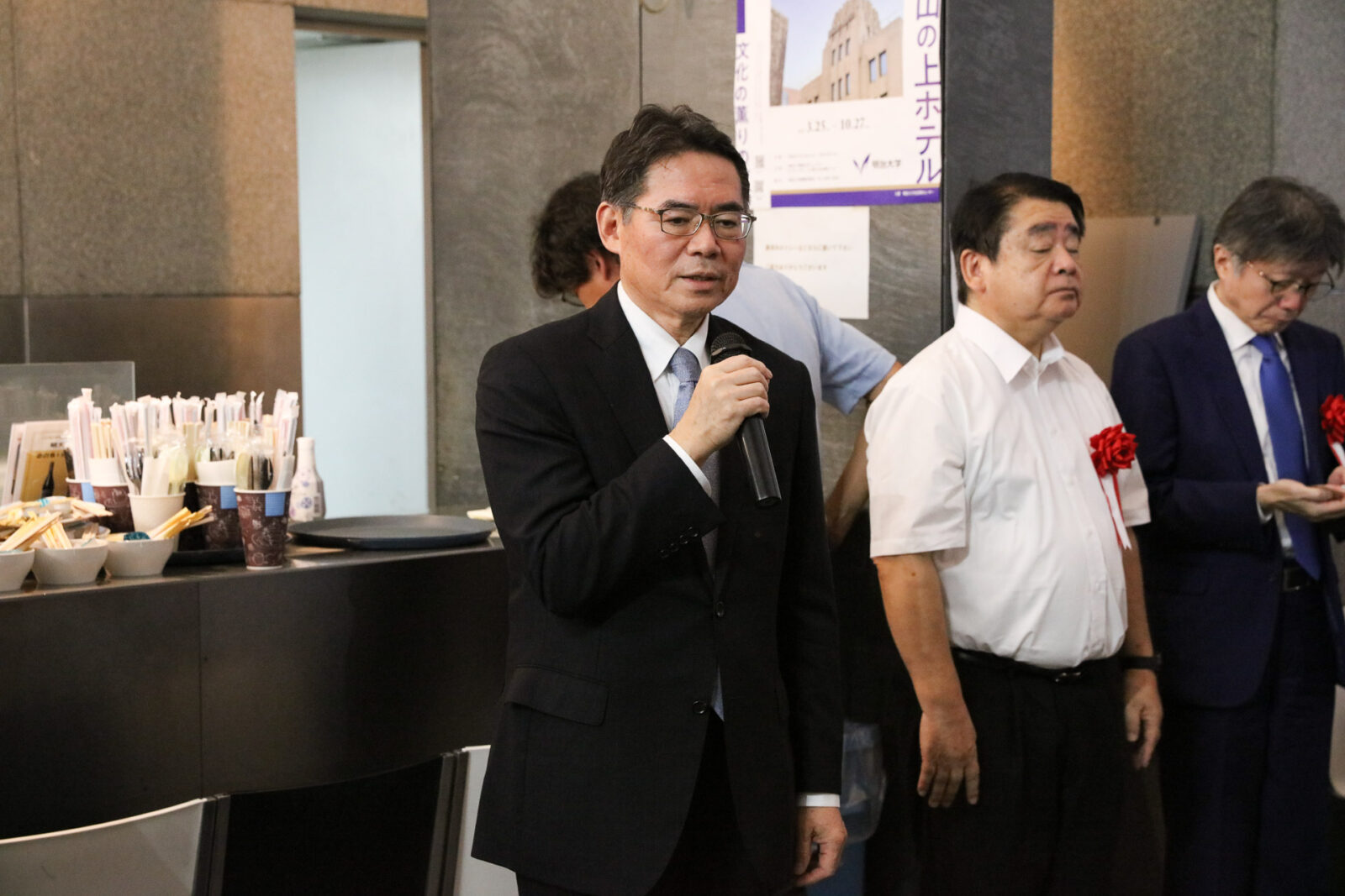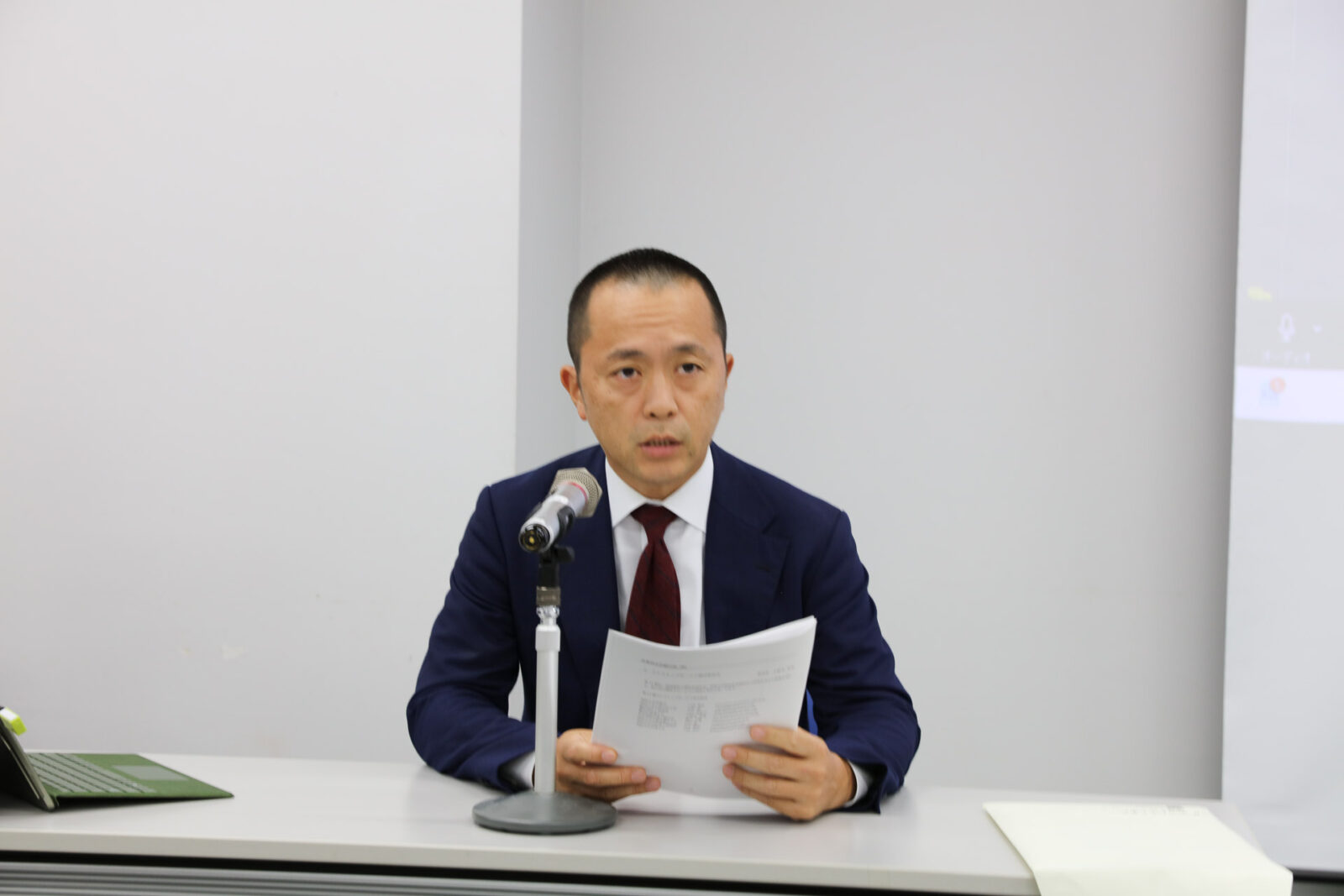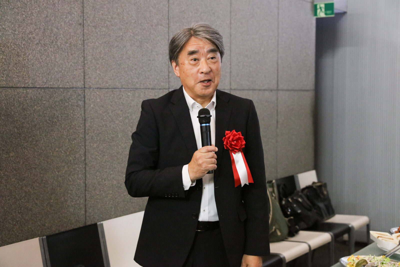 水戸部 繁樹 会長(明治大学不動産鑑定士会)の開会の辞で始まり明治大学 法学部 学部長 長坂 純 様と明治大学 情報コミュニケーション学部 学部長 阿部 力也 様からご挨拶をいただきました。