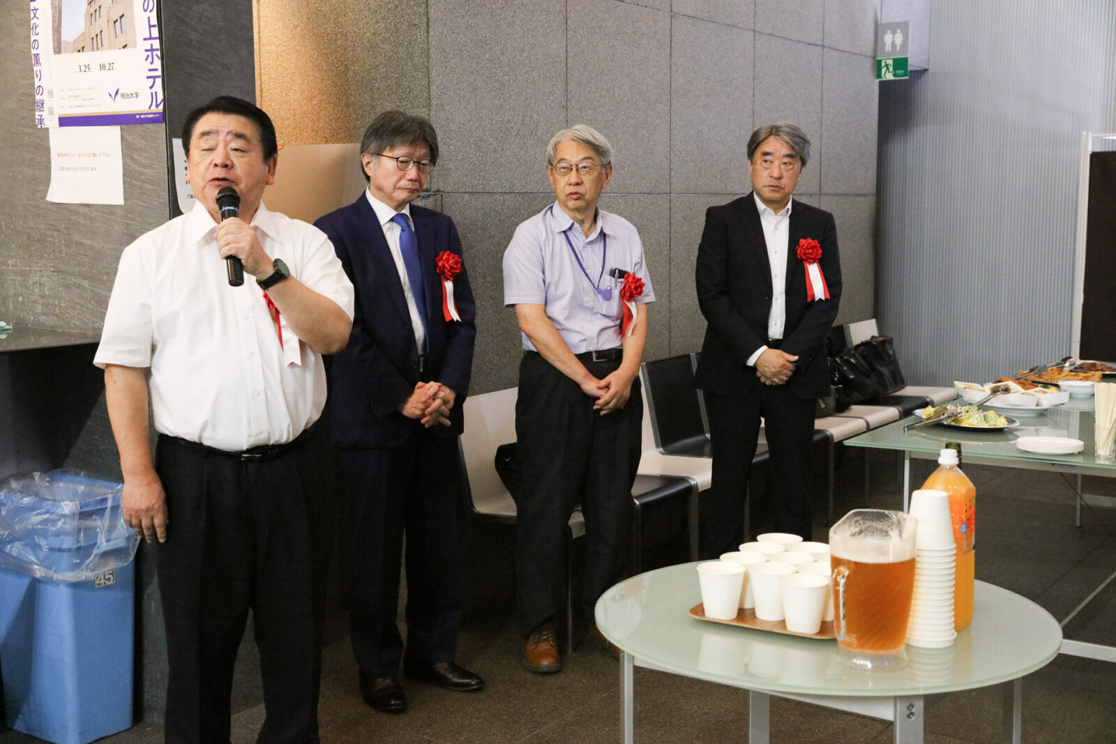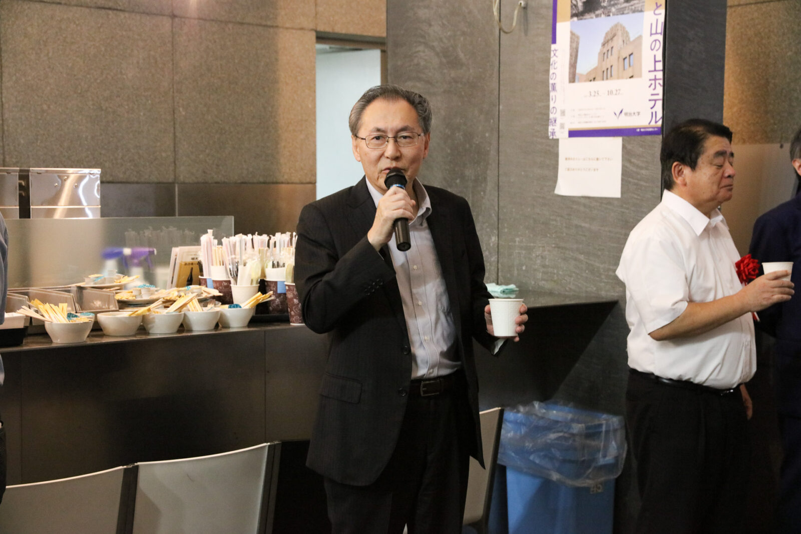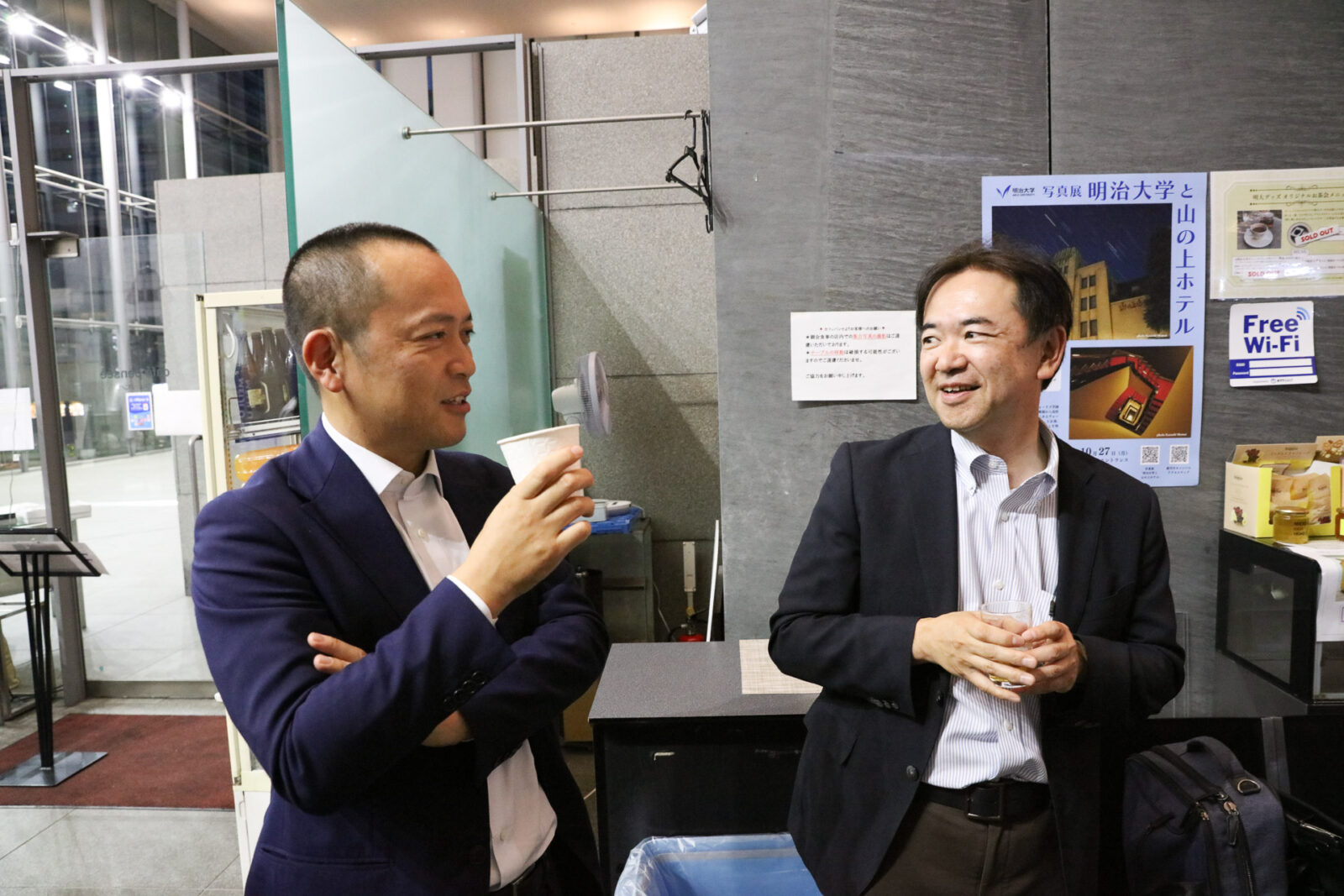 その後、会場を明治大学カフェパンセに移動して、午後5時30分から懇親会を開催。