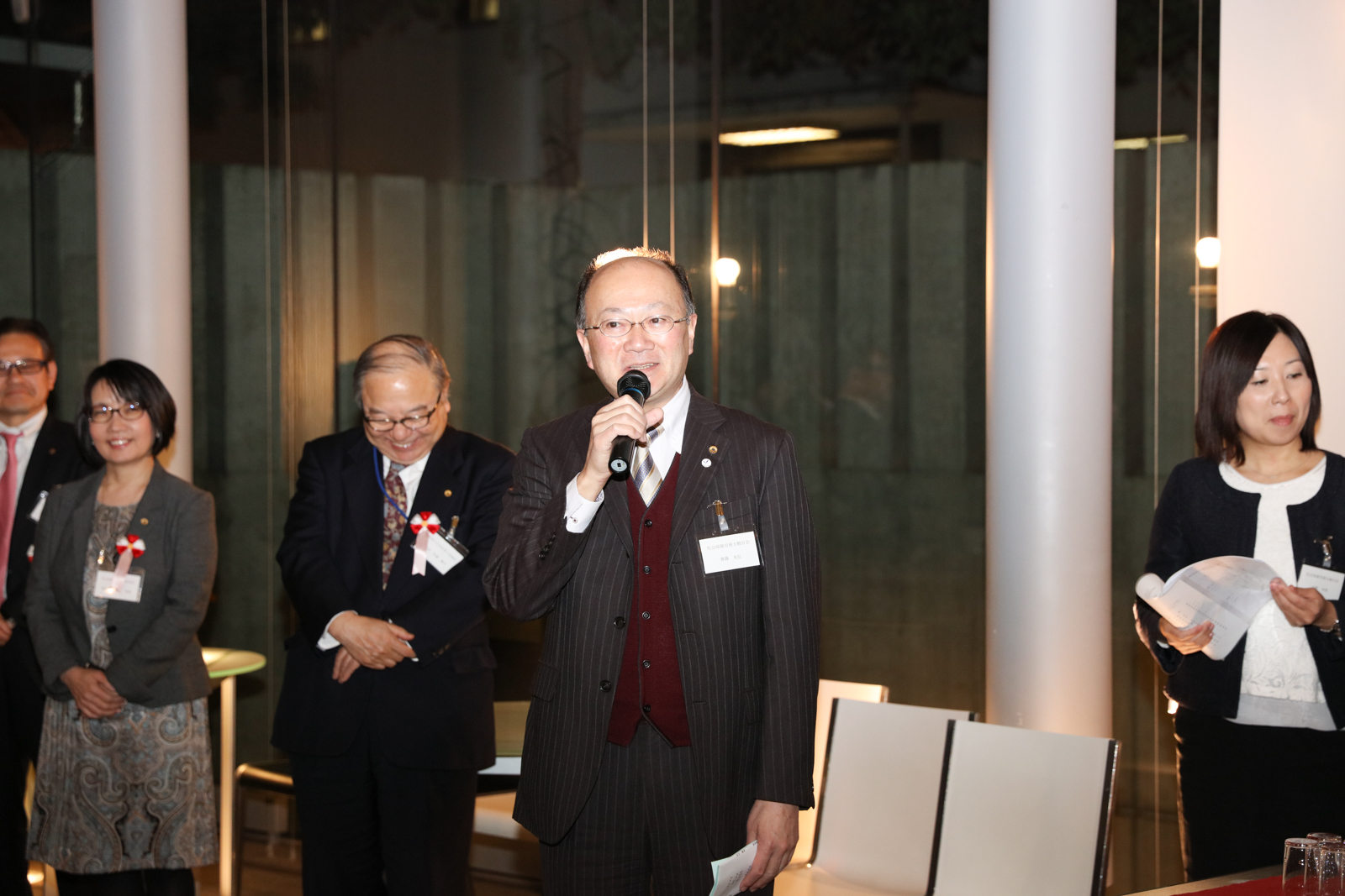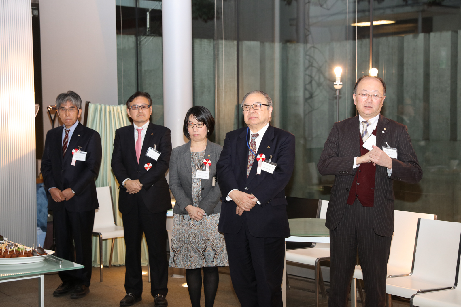 その後、午後6時30分より明治大学アカデミーコモン1階のカフェパンセにて、社会保険労務士駿台会主催の新年会が開催され、明治大学校友会 会長 向殿 政男 先生をはじめ多くのご来賓とともに明治大学士業会からは、黒木 芳男 会長、加藤 史郎 理事、大塚 大 理事、清家 亮三 理事が出席いたしました。